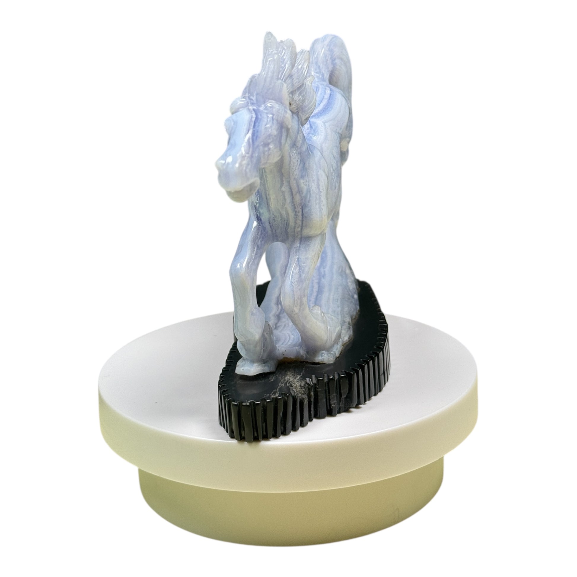 Gemstone Unique Running Horse Carving with Black Stone Base - Blue Lace Agate